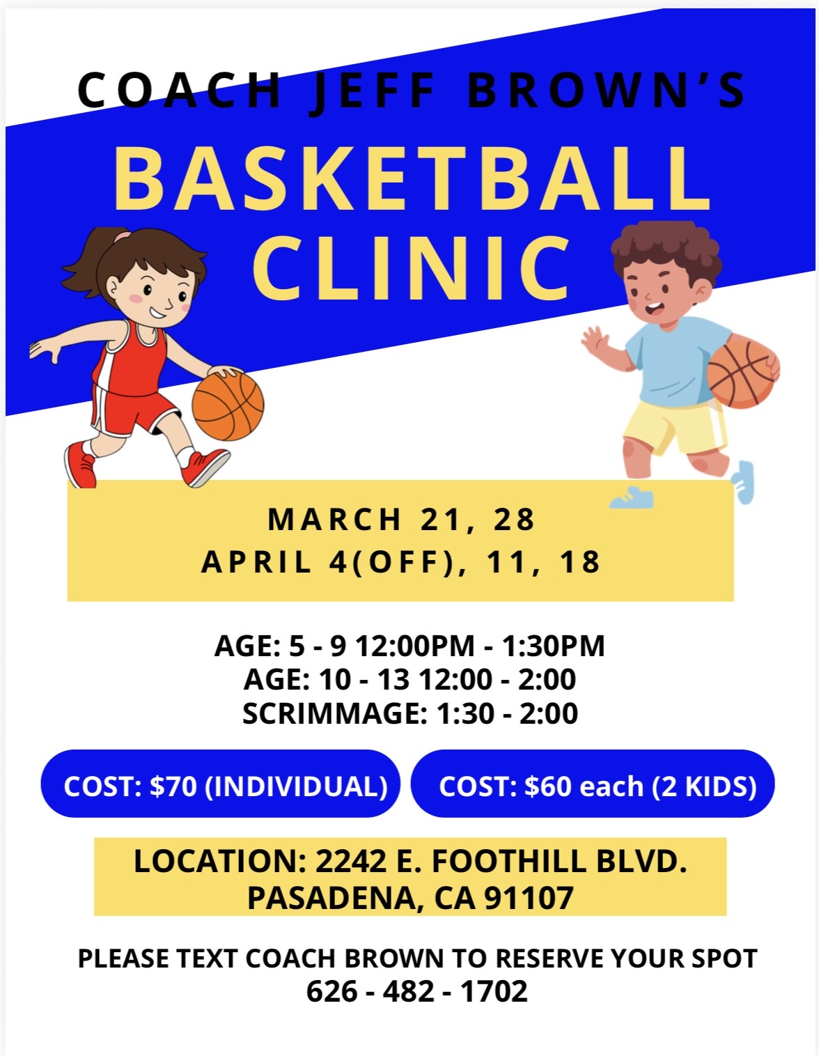 Contact Coach Jeff Brown for information or questions at: (626) 482-1702 jjosephbrown@yahoo.com